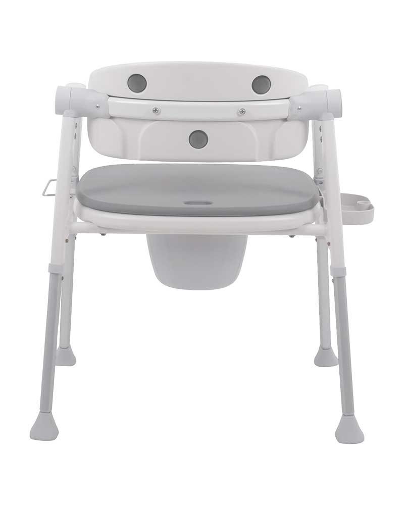 Stolen er udstyret med polstret PU-sæde og ryg for øget komfort ved længerevarende brug. PU-overfladen er vandafvisende og rengøringsvenlig og understøtter en høj hygiejnestandard i daglig drift. Den integrerede toiletspand med låg kan afmonteres og tømmes hurtigt og forsvarligt.
